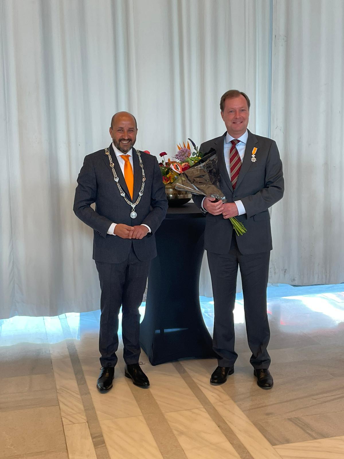 Vandaag ontving Mark uit de handen van Burgemeester Ahmed Marcouch een koninklijke onderscheiding! Hij is nu lid in de Orde van Oranje-Nassau. Mark kreeg deze onderscheiding voor zijn jarenlange inzet (vanaf 1992!) en verdiensten als Penningmeester van de EHBO-vereniging.